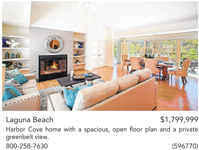 Laguna Beach $1,799,999 Harbor Cove home with a spacious, open floor plan and a private greenbelt view.