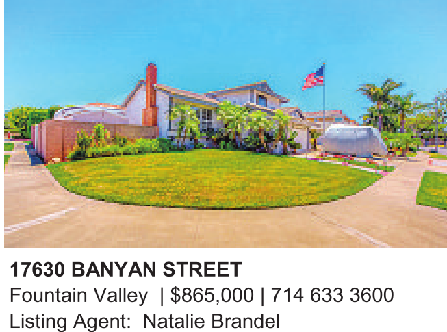 Fountain Valley | $865,000 | 714 633 3600 Listing Agent: Natalie Brandel