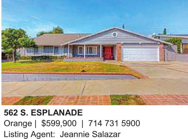Orange | $599,900 | 714 731 5900 Listing Agent: Jeannie Salazar