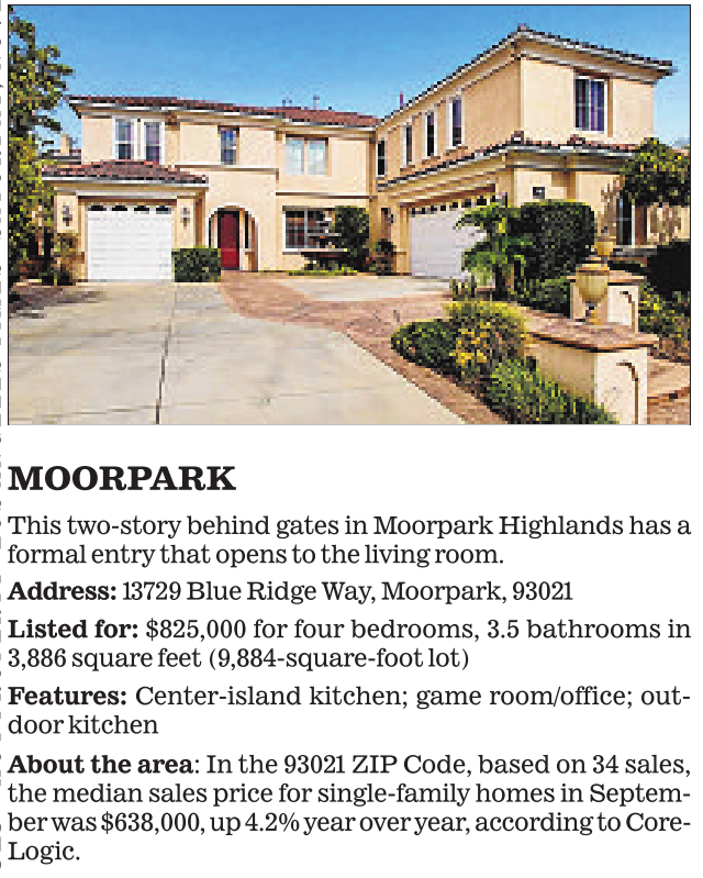 About the area: In the 93021 ZIP Code, based on 34 sales, the median sales price for single-family homes in September was $638,000, up 4.2% year over year, according to Core- Logic.
