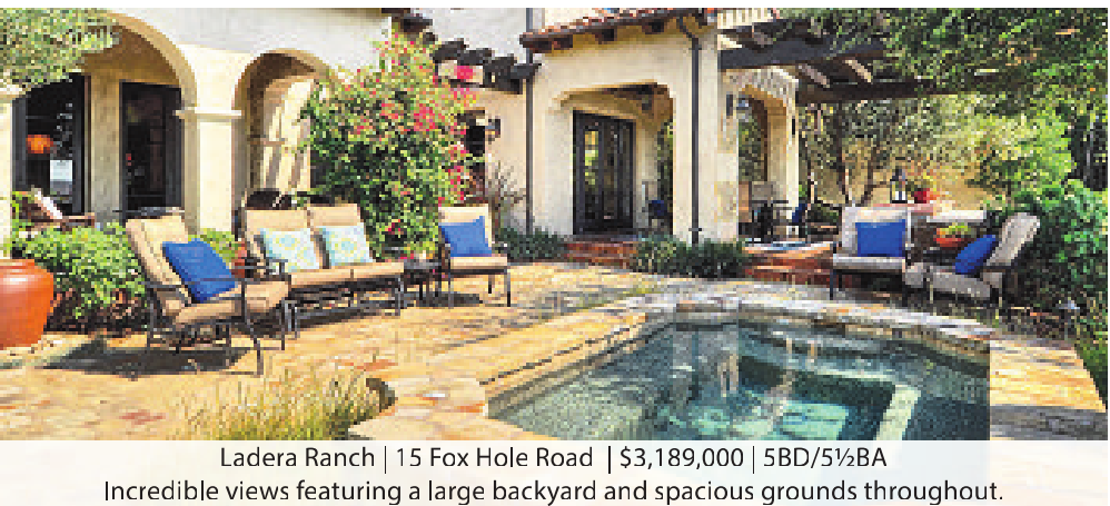 Ladera Ranch | 15 Fox Hole Road | $3,189,000 | 5BD/5½BA Incredible views featuring a large backyard and spacious grounds throughout.