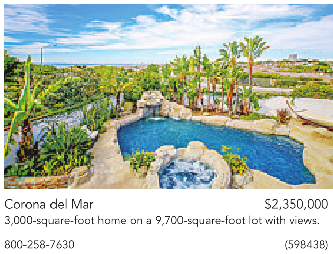 Corona del Mar $2,350,000 3,000-square-foot home on a 9,700-square-foot lot with views.