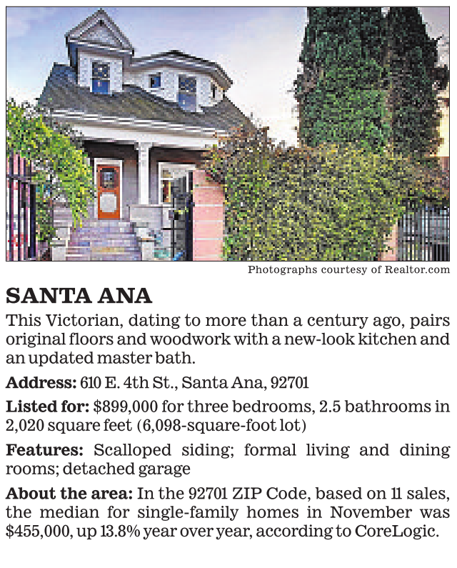 SANTA ANA This Victorian, dating to more than a century ago, pairs original floors and woodwork with a new-look kitchen and an updated master bath.