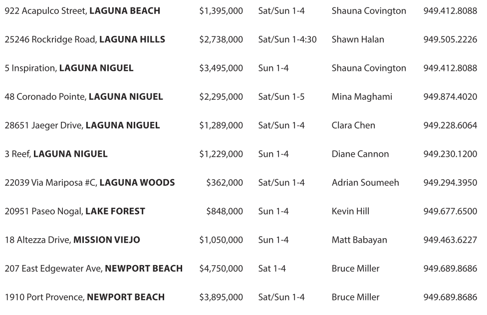25246 Rockridge Road, LAGUNA HILLS $2,738,000 Sat/Sun 1-4:30 Shawn Halan 949.505.2226