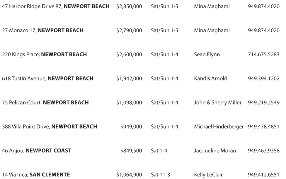 75 Pelican Court, NEWPORT BEACH $1,098,000 Sat/Sun 1-4 John &SherryMiller 949.219.2549