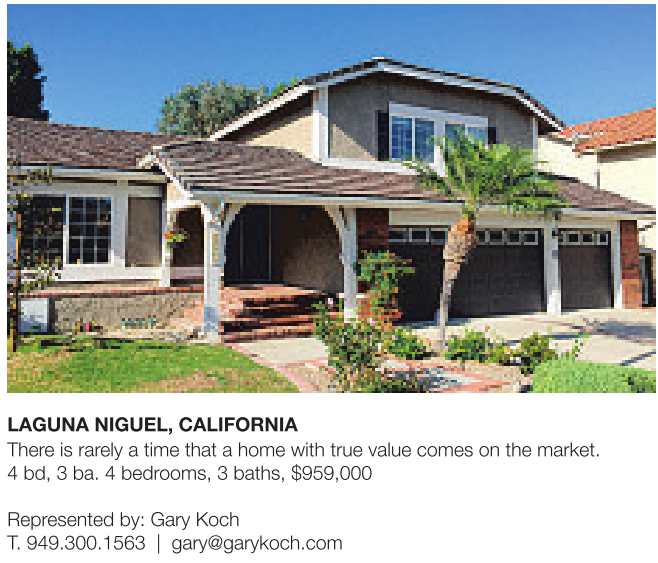 LAGUNA NIGUEL, CALIFORNIA There israrely atime that ahome with true value comes on the market. 4bd, 3ba. 4bedrooms, 3baths, $959,000