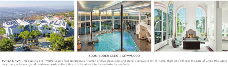 YORBA LINDA: This dazzling over 19,000 square foot architectural triumph of blue glass, steel and stone is unique in all the world. High on a hill near the gate of Chino Hills State Park, the spectacular gated residence provides the ultimate in luxurious interior and exterior comforts.