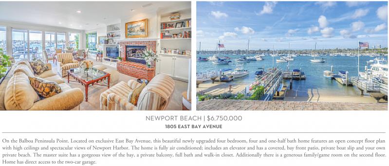 On the Balboa Peninsula Point. Located on exclusive East Bay Avenue, this beautiful newly upgraded four bedroom, four and one-half bath home features an open concept floor plan with high ceilings and spectacular views of Newport Harbor. The home is fully air conditioned; includes an elevator and has a covered, bay front patio, private boat slip and your own private beach. The master suite has a gorgeous view of the bay, a private balcony, full bath and walk-in closet. Additionally there is a generous family/game room on the second floor. Home has direct access to the two-car garage.