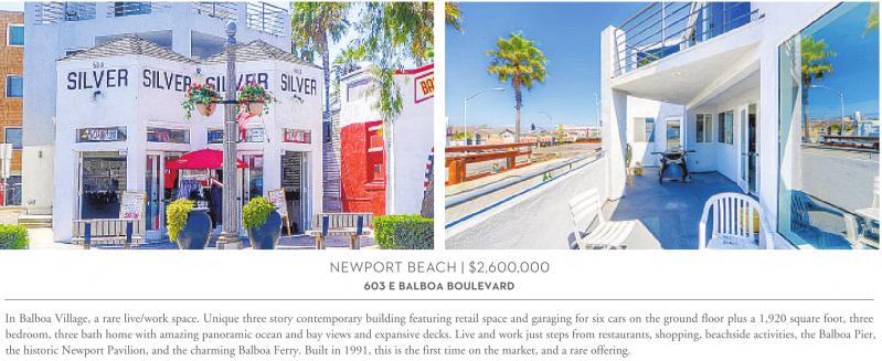 In Balboa Village, a rare live/work space. Unique three story contemporary building featuring retail space and garaging for six cars on the ground floor plus a 1,920 square foot, three bedroom, three bath home with amazing panoramic ocean and bay views and expansive decks. Live and work just steps from restaurants, shopping, beachside activities, the Balboa Pier, the historic Newport Pavilion, and the charming Balboa Ferry. Built in 1991, this is the first time on the market, and a rare offering.