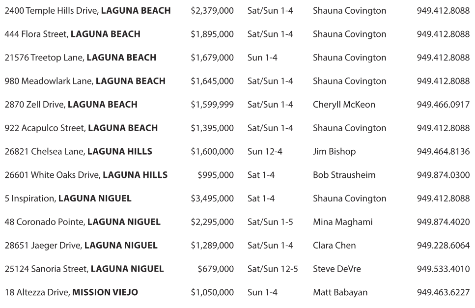 2400 Temple Hills Drive, LAGUNA BEACH $2,379,000 Sat/Sun 1-4 Shauna Covington 949.412.8088