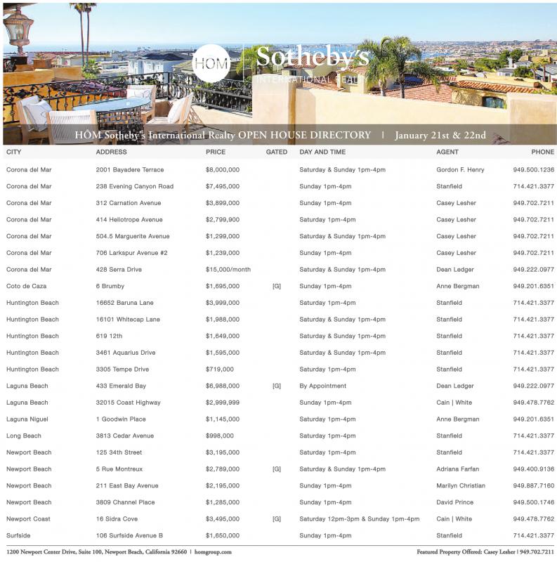 HÔM Sotheby's International Realty OPEN HOUSE DIRECTORY | January 21st & 22nd