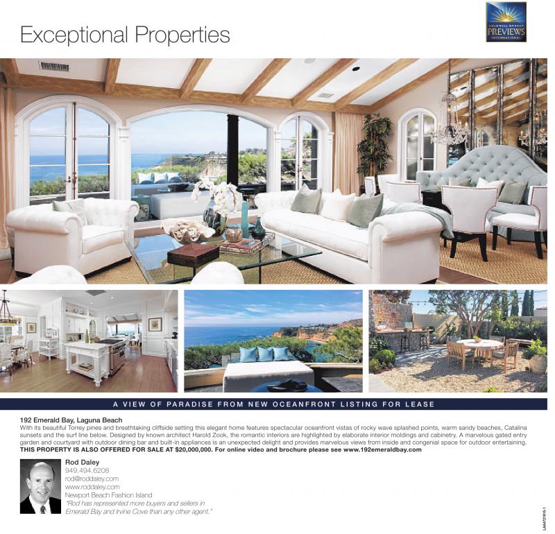Rod Daley 949.494.6208 rod@roddaley.com www.roddaley.com Newport Beach Fashion Island “Rod has represented more buyers and sellers in Emerald Bay and Irvine Cove than any other agent.”