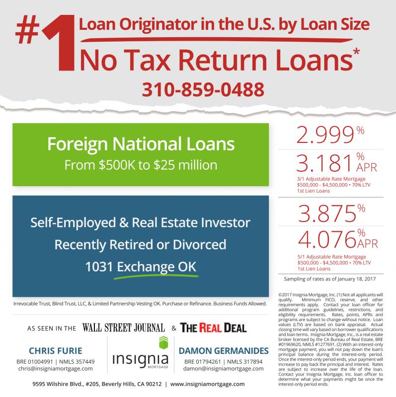 ©2017 Insignia Mortgage, Inc. (1) Not all applicants will qualify. Minimum FICO, reserve, and other requirements apply. Contact your loan officer for additional program guidelines, restrictions, and eligibility requirements. Rates, points, APRs and programs are subject to change without notice. Loan values (LTV) are based on bank appraisal. Actual closing time will vary based on borrower qualifications and loan terms. Insignia Mortgage, Inc., is areal estate broker licensed by the CA Bureau of Real Estate, BRE #01969620, NMLS #1277691. (2) With an interest-only mortgage payment, you will not pay down the loan’s principal balance during the interest-only period. Once the interest-only period ends, your payment will increase to pay back the principal and interest. Rates are subject to increase over the life of the loan. Contact your Insignia Mortgage, Inc. loan officer to determine what your payments might be once the interest-only period ends.