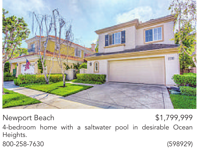 Newport Beach $1,799,999 4-bedroom home with a saltwater pool in desirable Ocean Heights.
