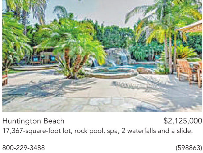 Huntington Beach $2,125,000 17,367-square-foot lot, rock pool, spa, 2 waterfalls and a slide.