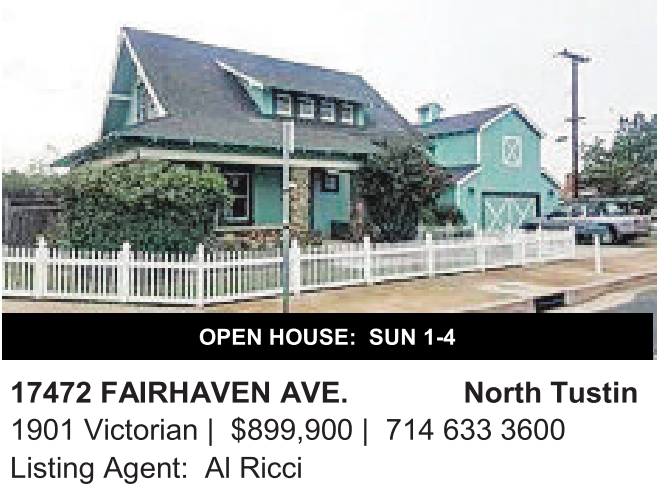 17472 FAIRHAVEN AVE. North Tustin 1901 Victorian | $899,900 | 714 633 3600 Listing Agent: Al Ricci