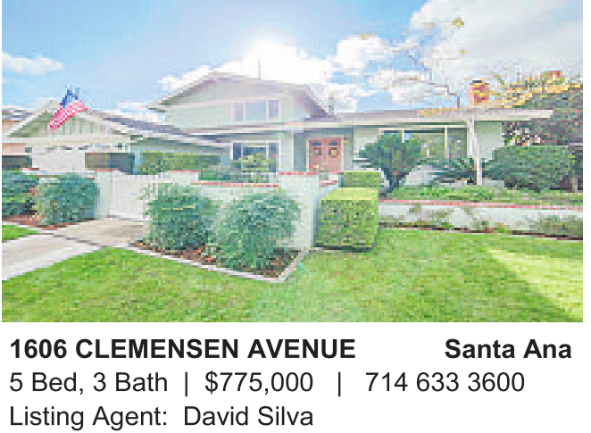 5 Bed, 3 Bath | $775,000 | 714 633 3600 Listing Agent: David Silva