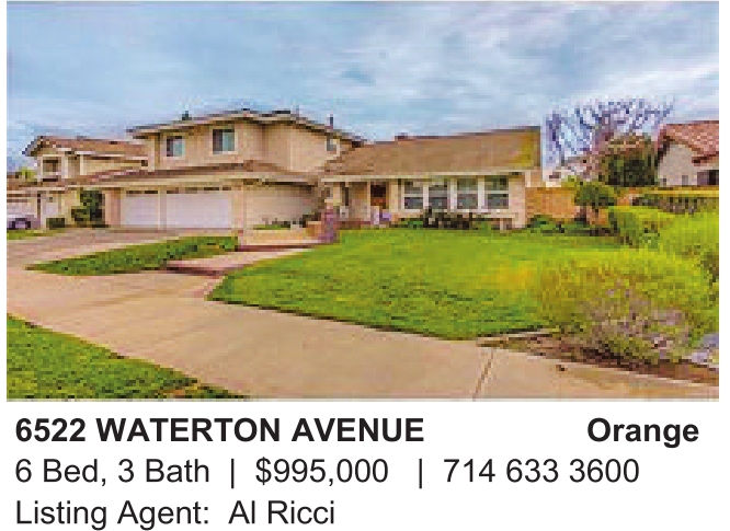 6 Bed, 3 Bath | $995,000 | 714 633 3600 Listing Agent: Al Ricci