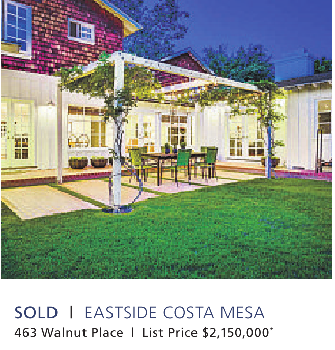 SOLD | EASTSIDE COSTA MESA 463 Walnut Place | List Price $2,150,000 *