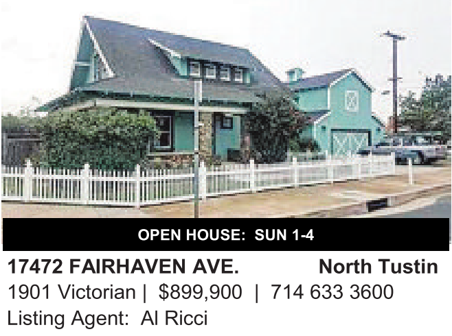 17472 FAIRHAVEN AVE. North Tustin 1901 Victorian | $899,900 | 714 633 3600 Listing Agent: Al Ricci