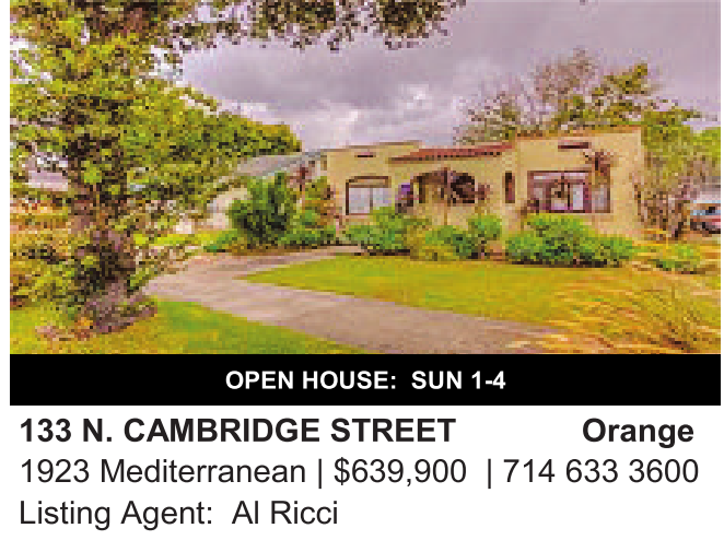 133 N. CAMBRIDGE STREET Orange 1923 Mediterranean | $639,900 | 714 633 3600 Listing Agent: Al Ricci