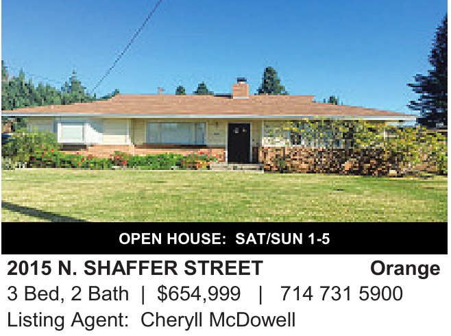 2015 N. SHAFFER STREET Orange 3 Bed, 2 Bath | $654,999 | 714 731 5900 Listing Agent: Cheryll McDowell