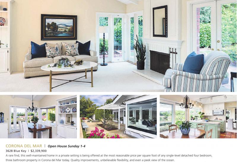 three bathroom property in Corona del Mar today. Quality improvements, unbelievable flexibility, and even a peek view of the ocean.
