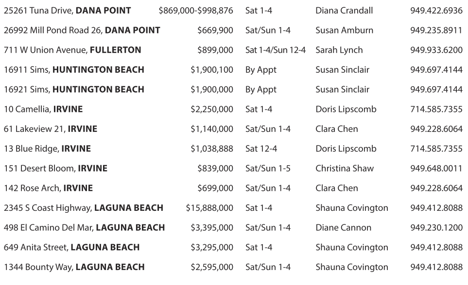 649 Anita Street, LAGUNA BEACH $3,295,000 Sat 1-4 Shauna Covington 949.412.8088