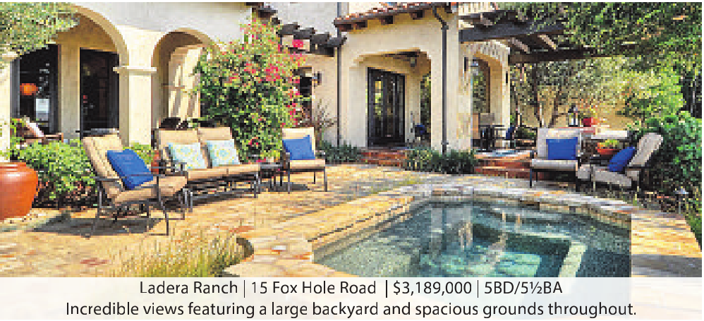 Ladera Ranch | 15 Fox Hole Road | $3,189,000 | 5BD/5½BA Incredible views featuring a large backyard and spacious grounds throughout.