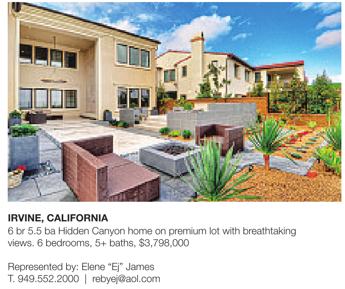 Represented by: Elene “Ej” James T. 949.552.2000 | rebyej@aol.com