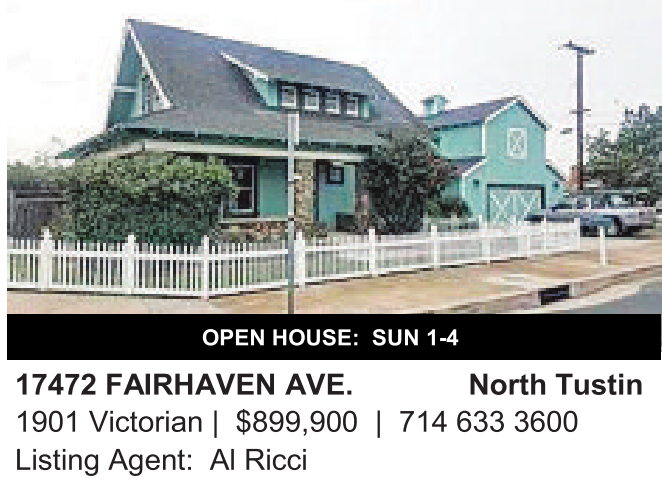 17472 FAIRHAVEN AVE. North Tustin 1901 Victorian | $899,900 | 714 633 3600 Listing Agent: Al Ricci