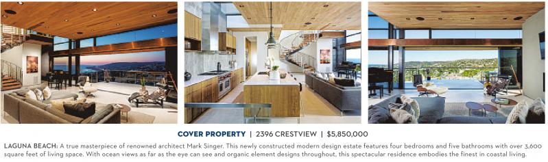 LAGUNA BEACH: A true masterpiece of renowned architect Mark Singer. This newly constructed modern design estate features four bedrooms and five bathrooms with over 3,600 square feet of living space. With ocean views as far as the eye can see and organic element designs throughout, this spectacular residence embodies the finest in coastal living.