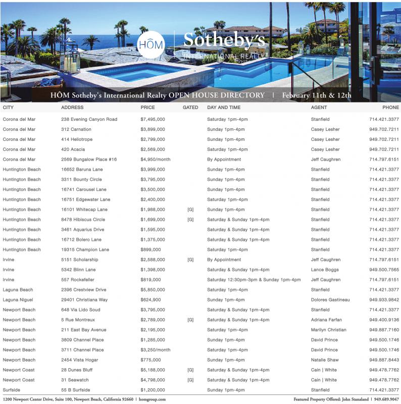 HÔM Sotheby's International Realty OPEN HOUSE DIRECTORY | February 11th & 12th