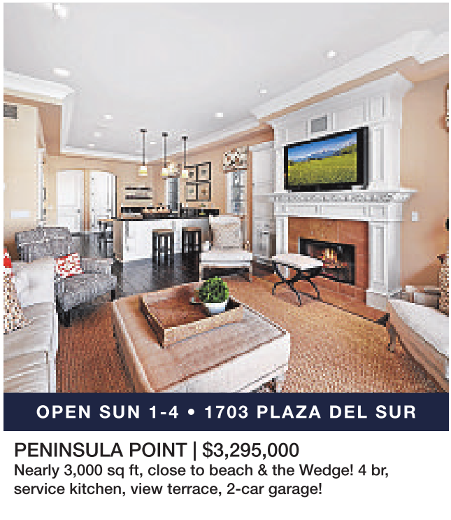 PENINSULA POINT | $3,295,000 Nearly 3,000 sq ft, close to beach & the Wedge! 4 br, service kitchen, view terrace, 2-car garage!