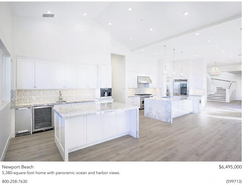 Newport Beach $6,495,000 5,380-square-foot home with panoramic ocean and harbor views.