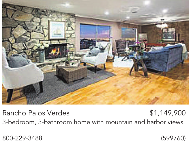 Rancho Palos Verdes $1,149,900 3-bedroom, 3-bathroom home with mountain and harbor views.