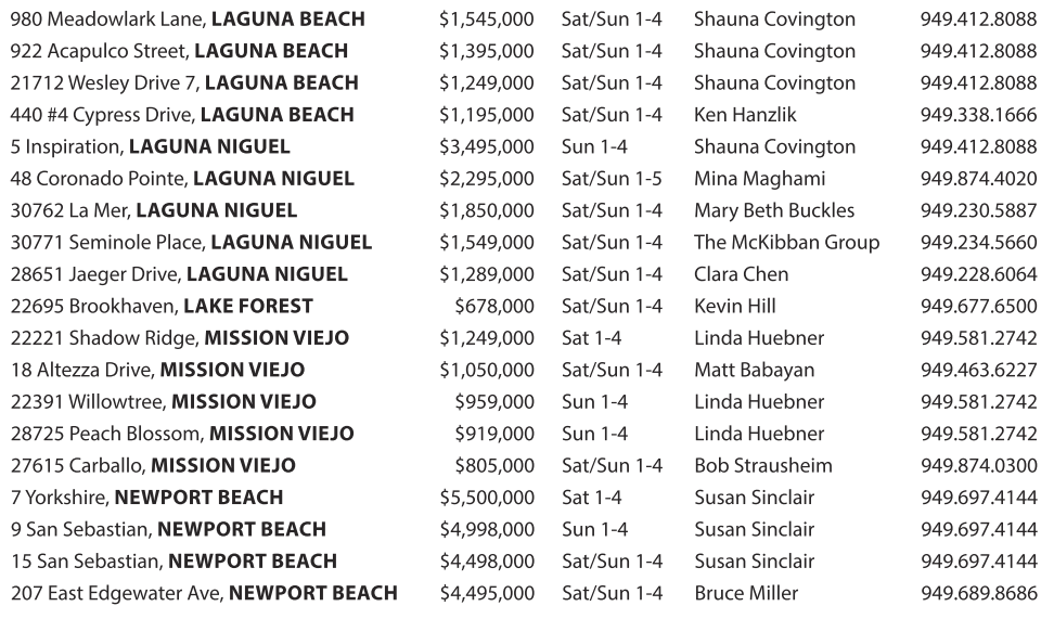 980 Meadowlark Lane, LAGUNA BEACH $1,545,000 Sat/Sun 1-4 Shauna Covington 949.412.8088