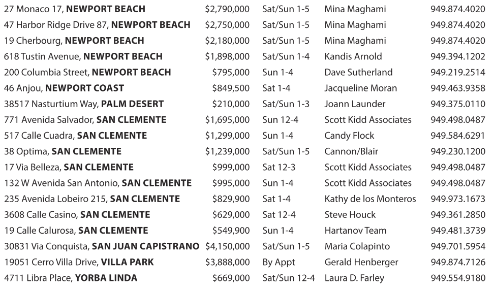 200 Columbia Street, NEWPORT BEACH $795,000 Sun 1-4 Dave Sutherland 949.219.2514