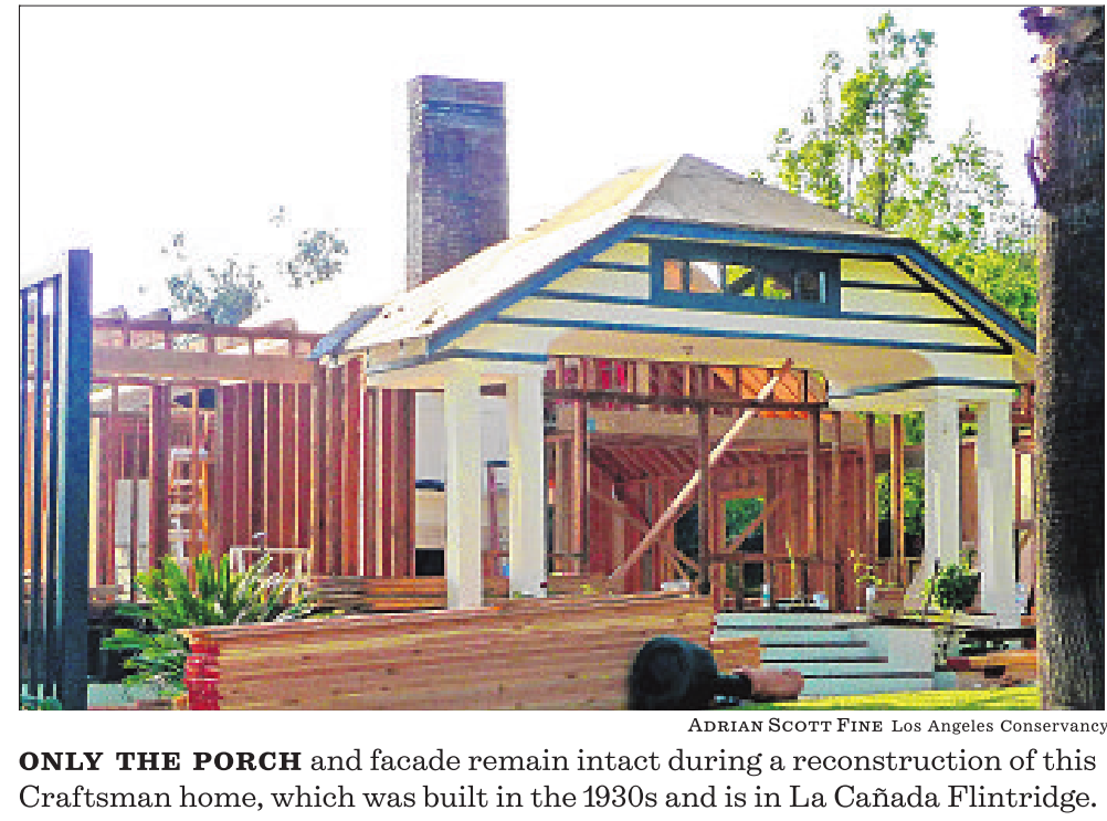 ONLY THE PORCH and facade remain intact during a reconstruction of this Craftsman home, which was built in the 1930s and is in La Cañada Flintridge.