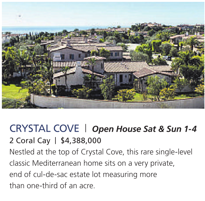 CRYSTAL COVE | Open House Sat & Sun 1-4