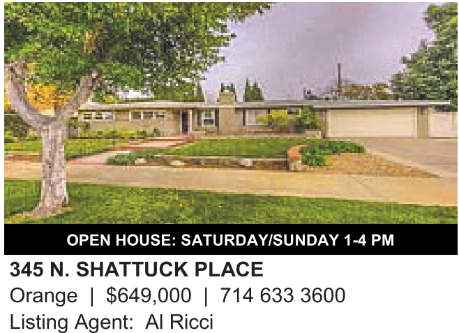 345 N. SHATTUCK PLACE Orange | $649,000 | 714 633 3600 Listing Agent: Al Ricci