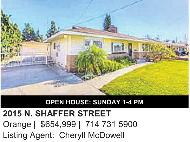 2015 N. SHAFFER STREET Orange | $654,999 | 714 731 5900 Listing Agent: Cheryll McDowell