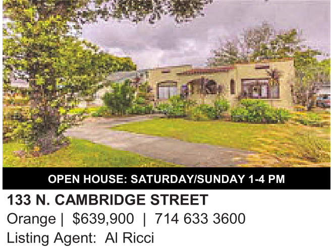 133 N. CAMBRIDGE STREET Orange | $639,900 | 714 633 3600 Listing Agent: Al Ricci