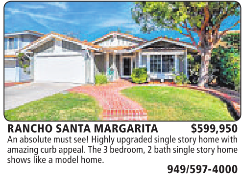 RANCHO SANTA MARGARITA $599,950 An absolute must see! Highlyupgraded single story homewith amazingcurbappeal. The3bedroom, 2bathsinglestory home showslikeamodelhome.