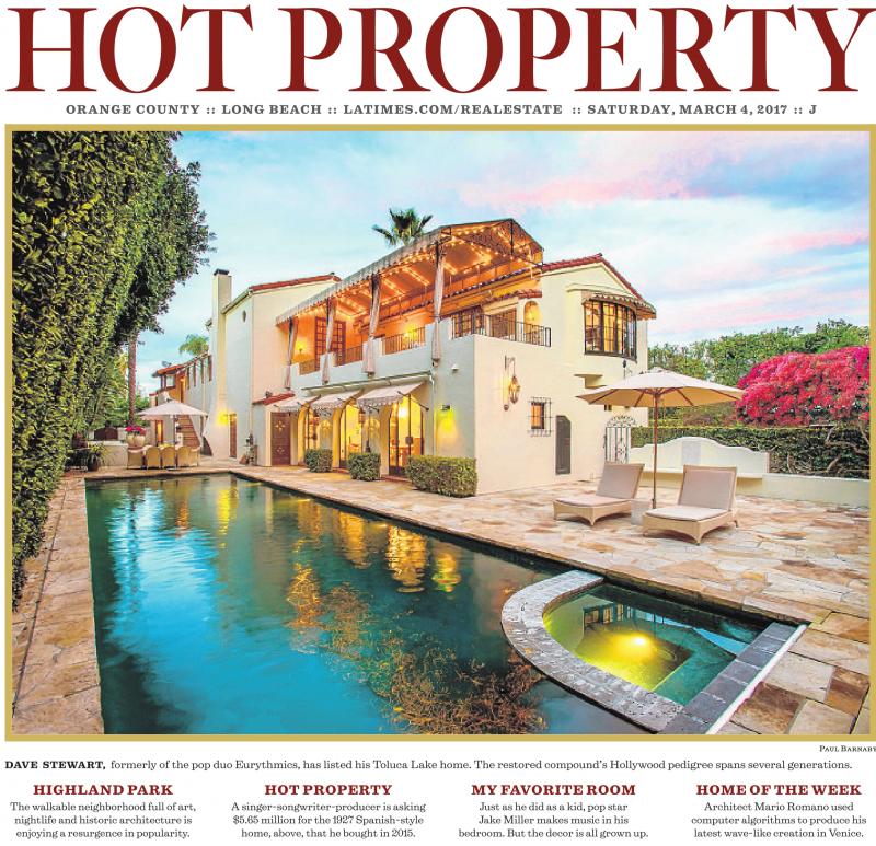 DAVE STEWART, formerly of the pop duo Eurythmics, has listed his Toluca Lake home. The restored compound’s Hollywood pedigree spans several generations.