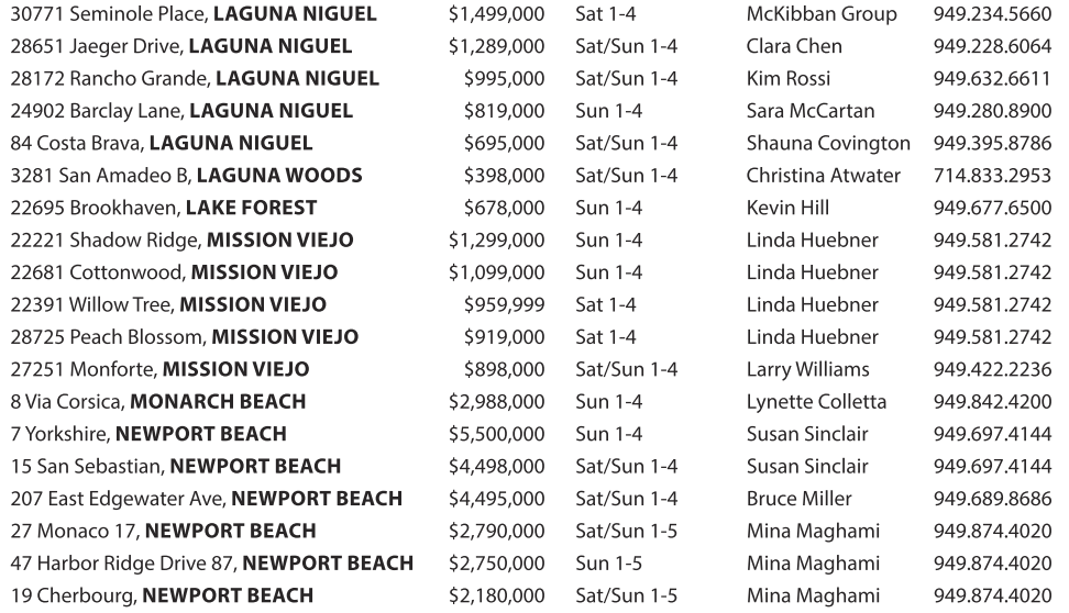 19 Cherbourg, NEWPORTBEACH $2,180,000 Sat/Sun 1-5 Mina Maghami 949.874.4020