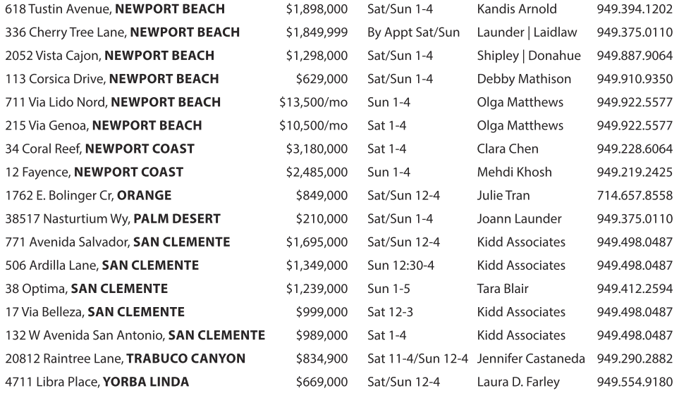 506 Ardilla Lane, SAN CLEMENTE $1,349,000 Sun 12:30-4 Kidd Associates 949.498.0487