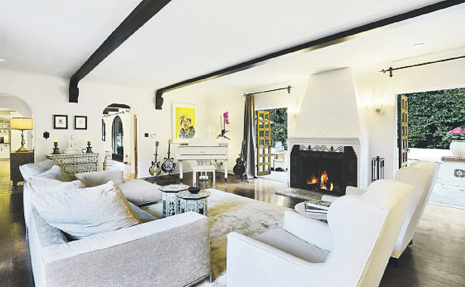 Restored and updated, the four-bedroom, six-bathroom home retains its vintage good looks while incorporating a range of modern comforts. Details include curved French doors and windows, beamed ceilings and Saltillo tile floors. There are fireplaces in the living room, library and master bedroom.