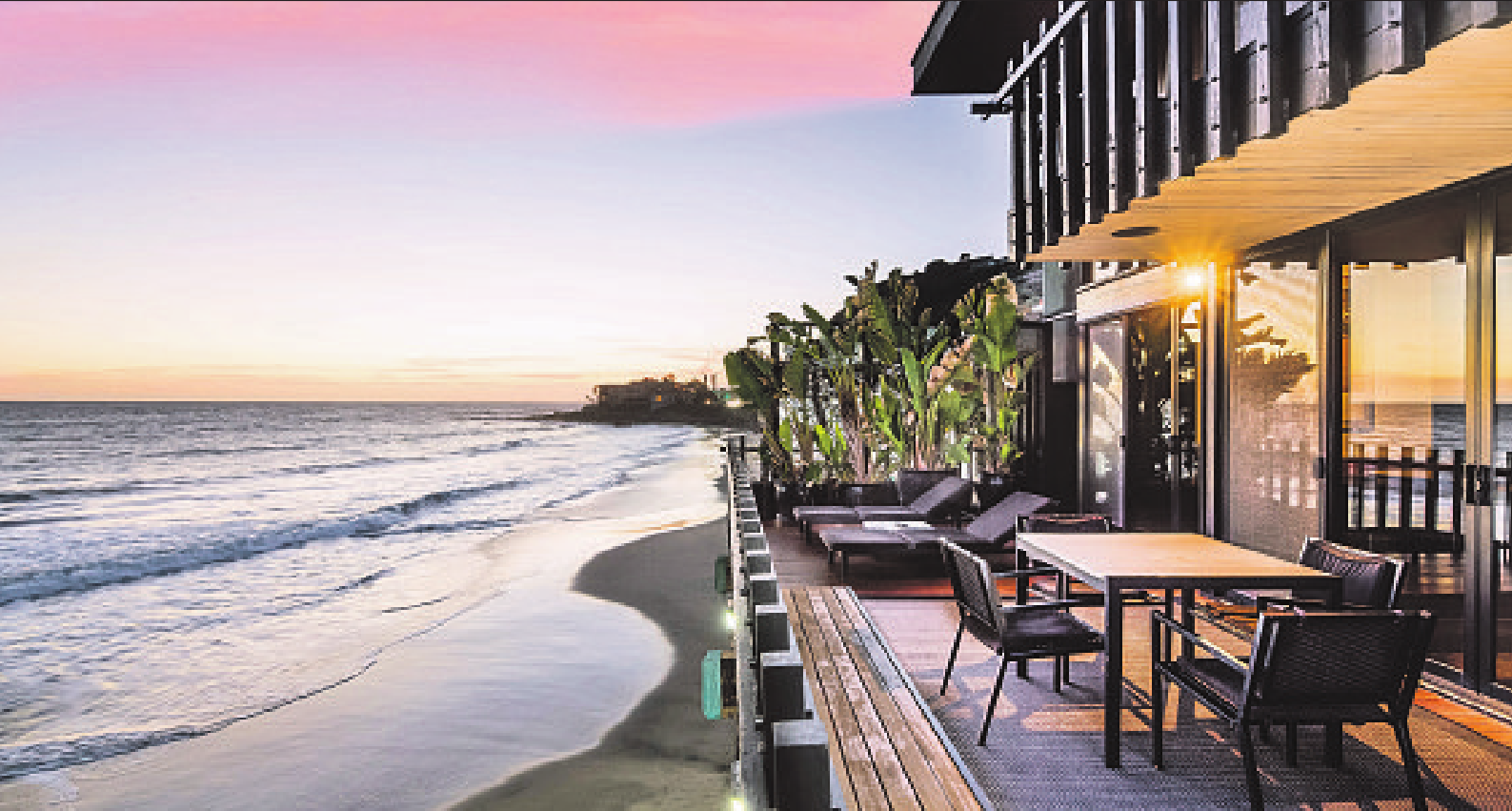 two-story sits on 40 feet of oceanfront on La Costa Beach, with