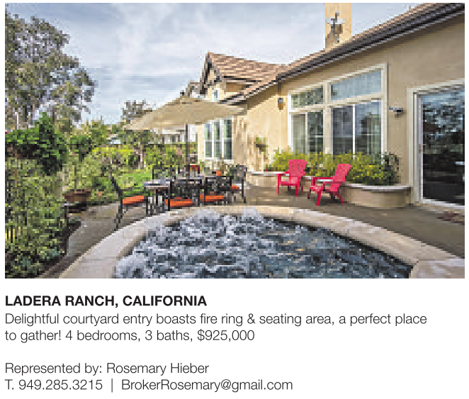 LADERA RANCH, CALIFORNIA Delightful courtyard entry boasts fire ring &seating area, aperfect place to gather! 4bedrooms, 3baths, $925,000